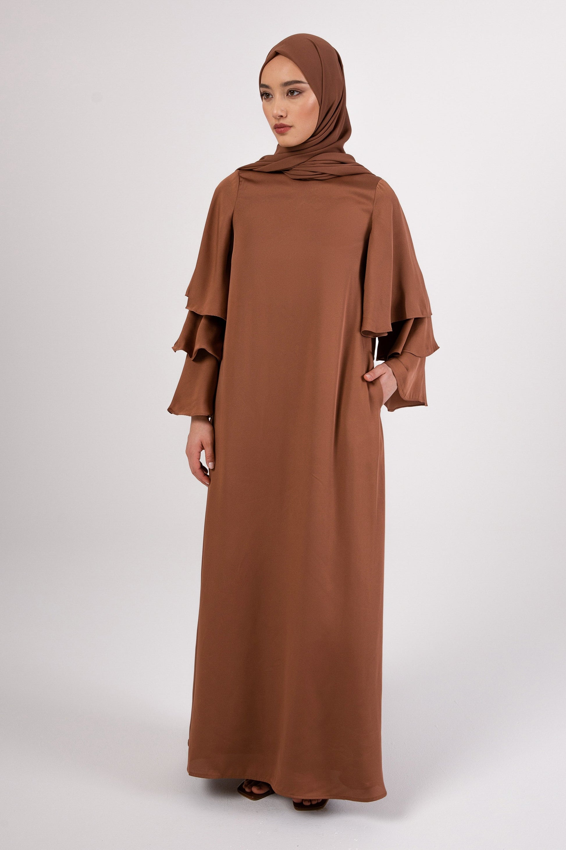Celia Ruffle Sleeve Maxi Dress - Mushroom