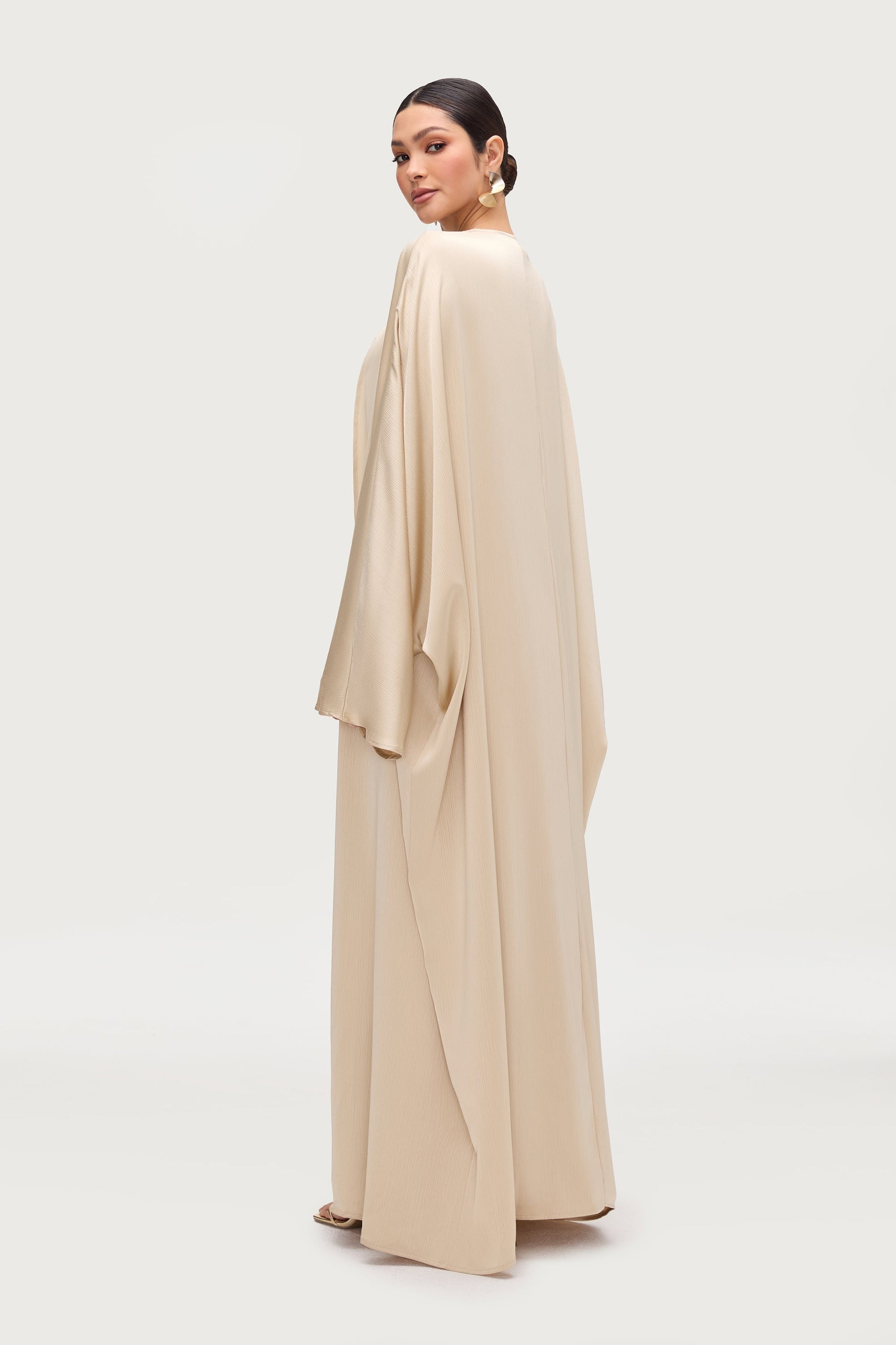Ghada Satin Open Abaya & Dress Set - Golden Sand