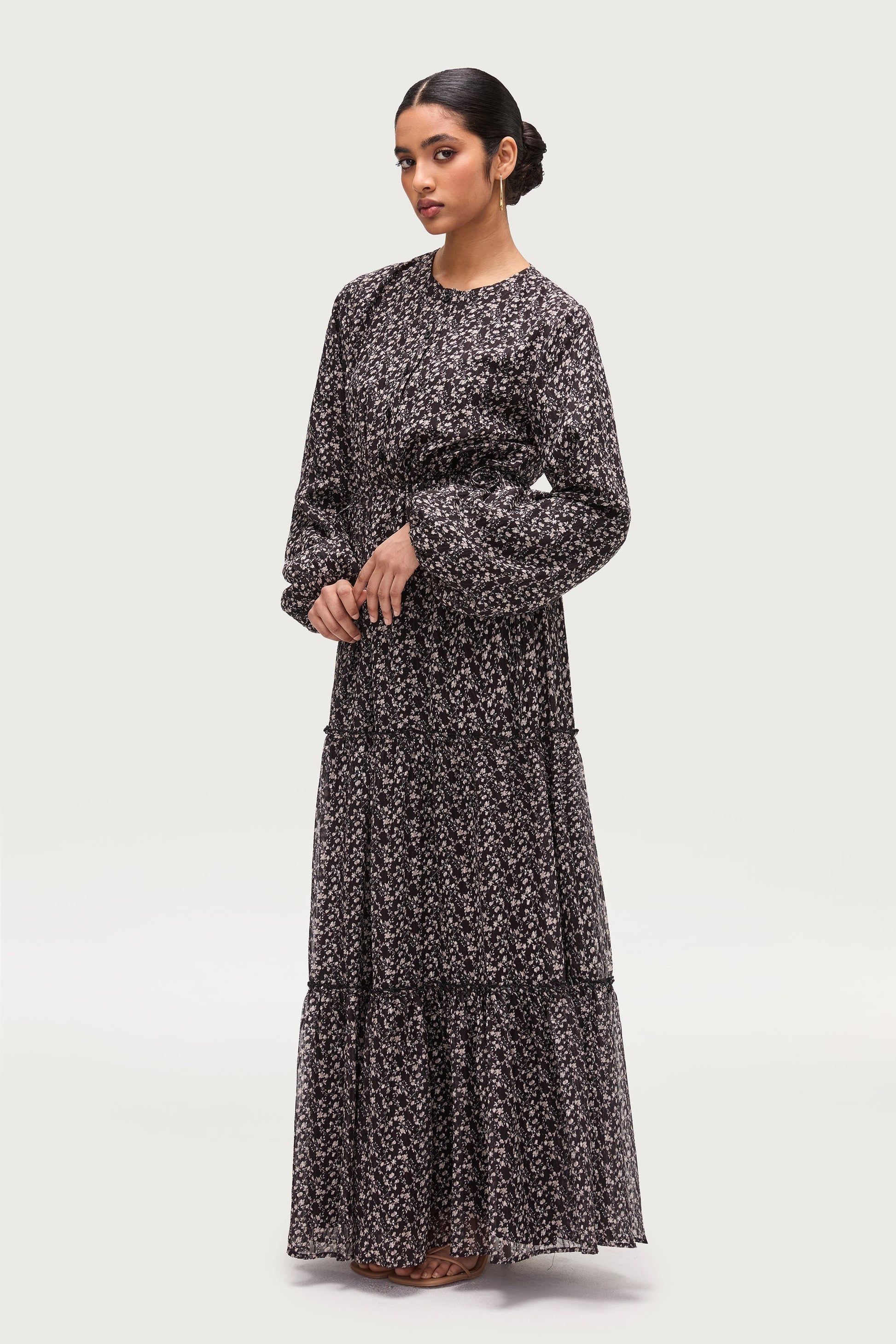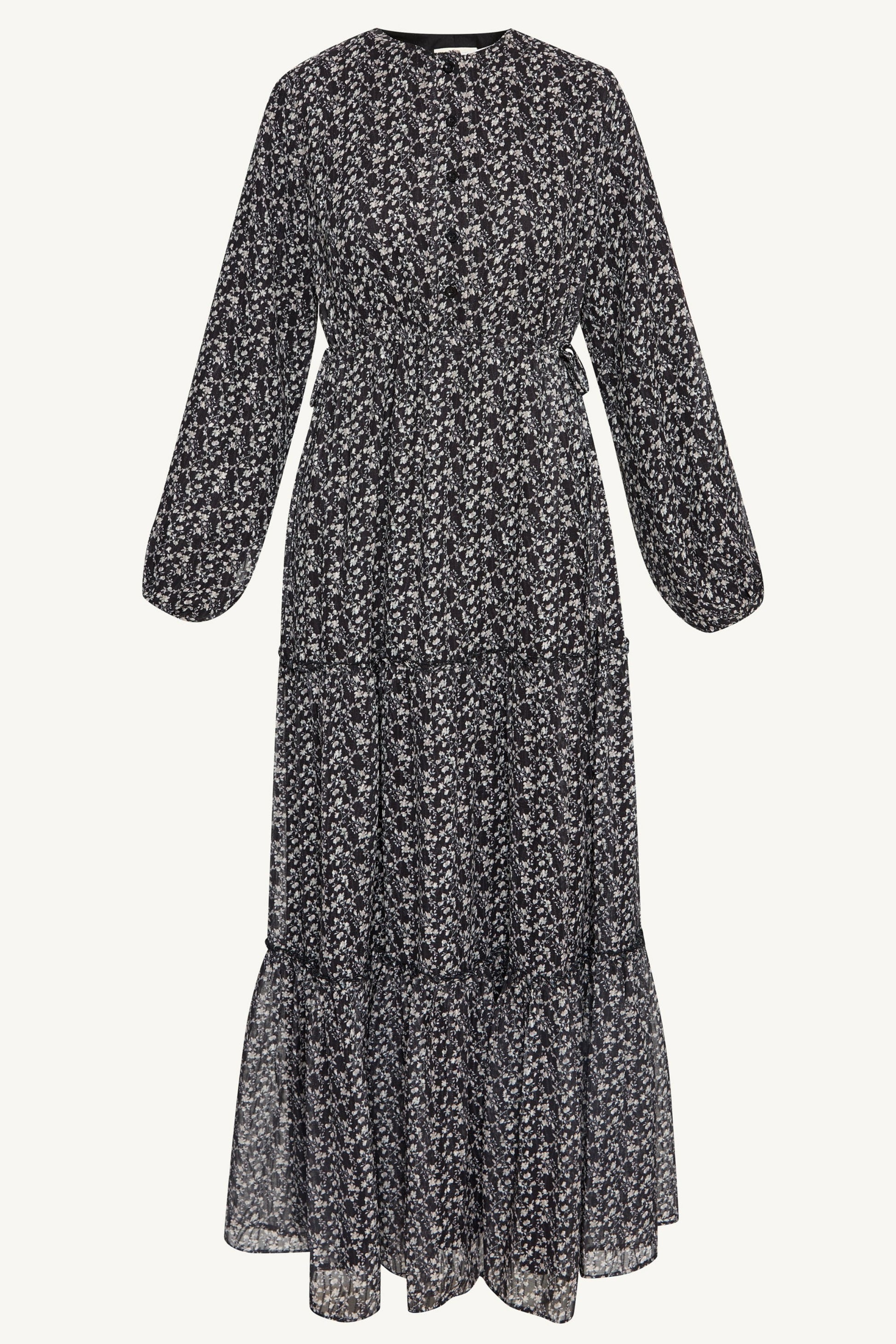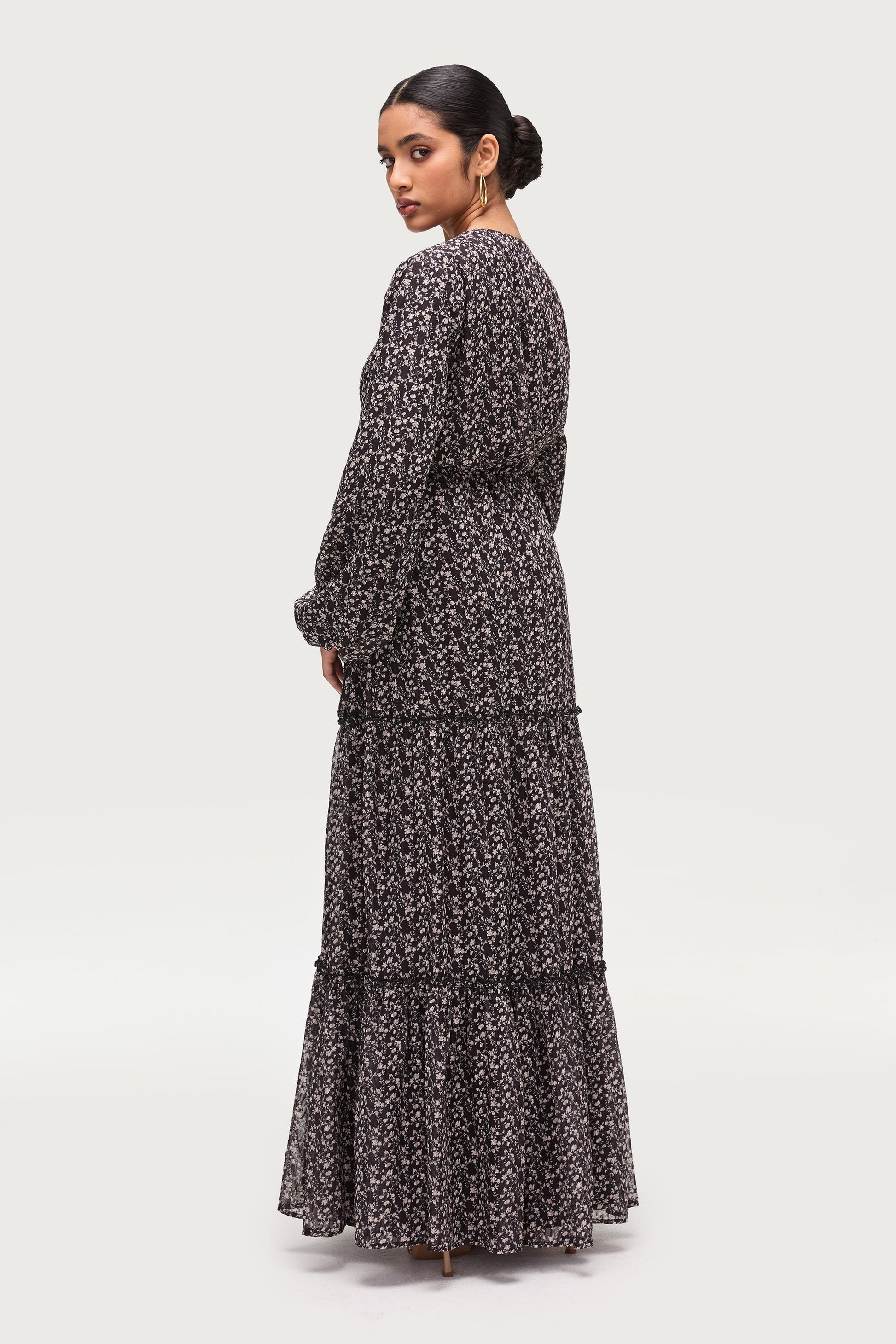 Tiered Flowy Button Down Maxi Dress - Black Floral